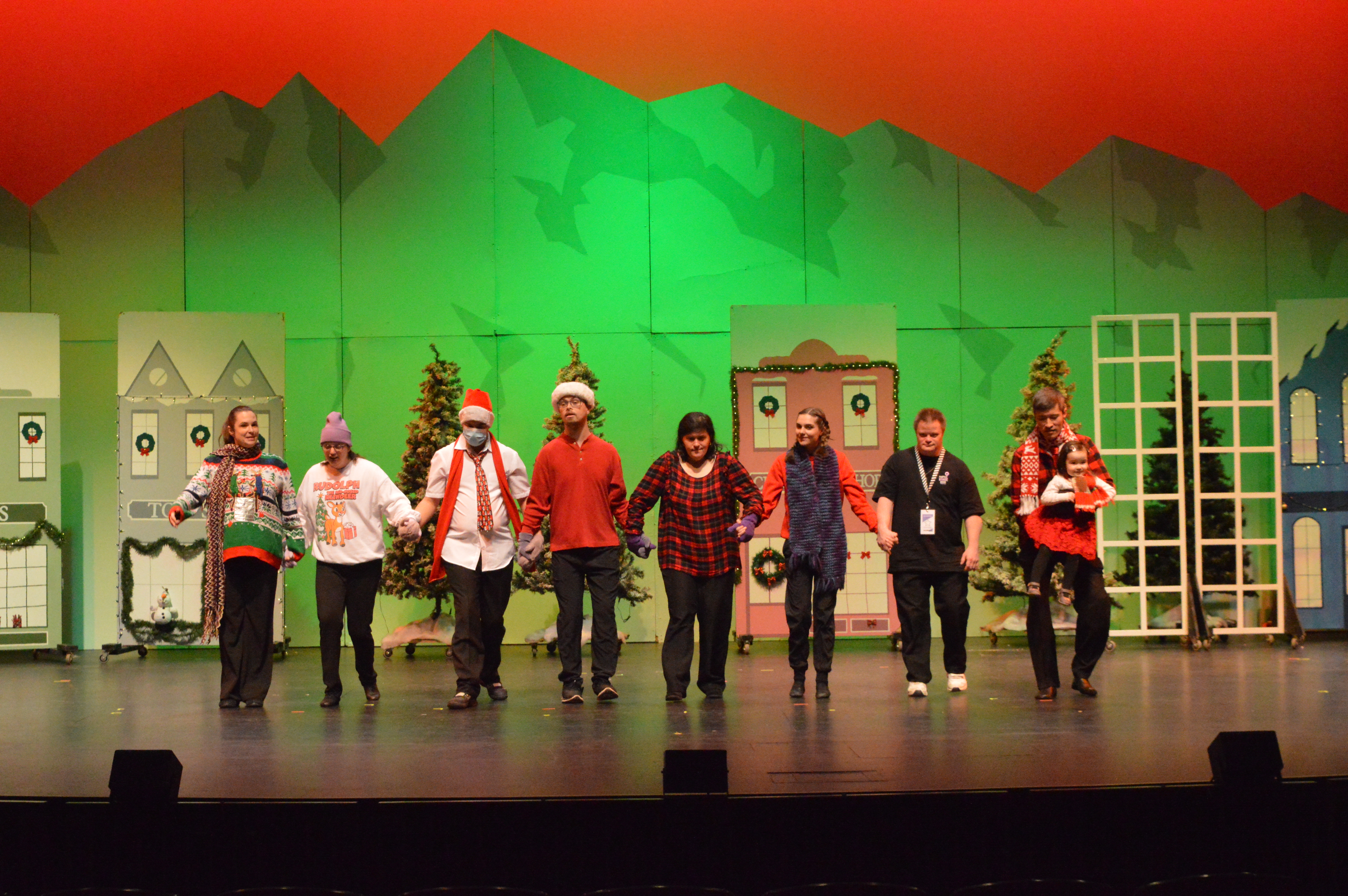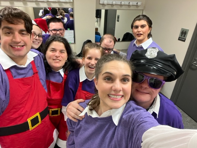 Our Community Connection opportunity is currently with Milton Community Theatre in their annual holiday production. Members of Purple Stage Door Productions become our “Ensemble Players” and join a cast of talented community members in character roles suited to them! They are integrated into scenes, dances and songs that are adapted to not only include them but also to allow them to shine their own talents and performance strengths on stage. As with our partnership programs, one of our prominent values is to give EVERYONE the chance to shine and have a part in contributing to their roles in our theatre production and to the community at large.